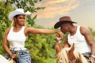 Nigerian music icon 2Baba and his wife Natasha Osawaru have dedicated their first child together in a church ceremony, videos of which have gone viral. The footage shows the couple joyfully dancing toward the altar, with Osawaru in a black gown cradling their baby wrapped in a white blanket, while 2Baba moved to rhythm in a traditional red outfit and dark shades.