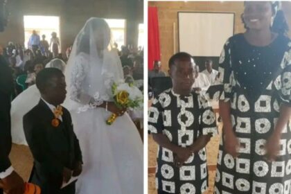 Trending Photos Of Diminutive Nigerian Man Who Wedded His Tall Wife In…