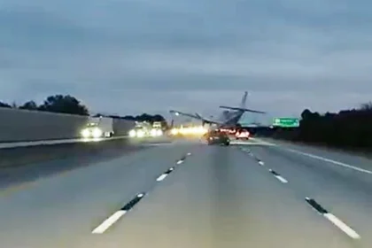 Horror moment plane ‘drops out of the sky’ and crushes car driving along busy highway