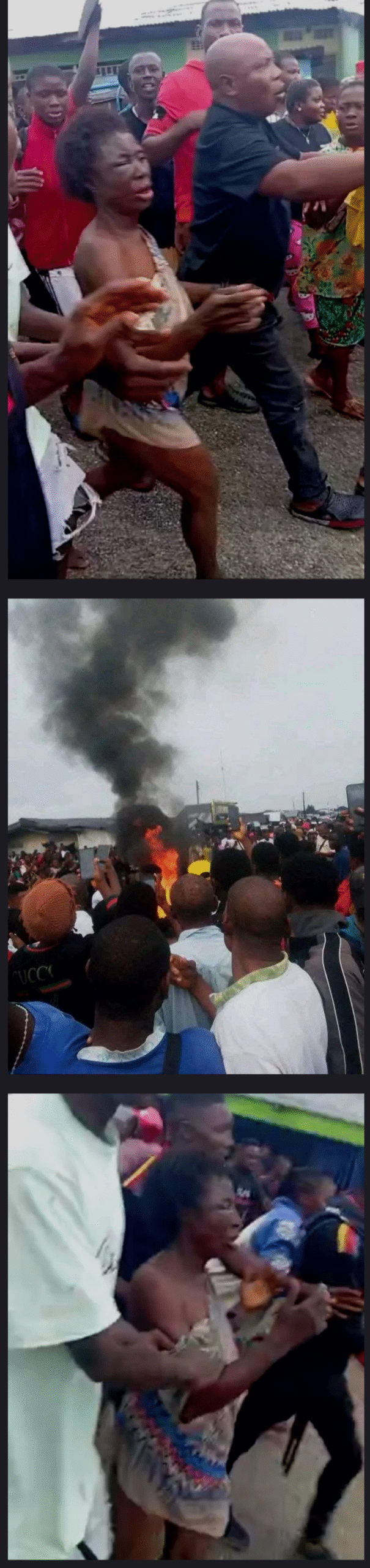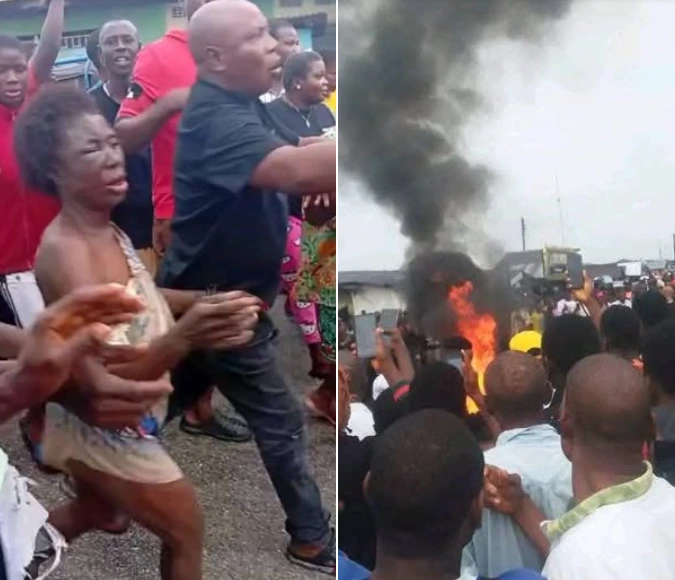 An angry mob set ablaze a woman accused in a failed child kidnapping attempt in Agbarho community, Ughelli North Local Government Area of Delta State.