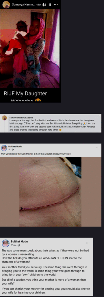Sumayya, from Adamawa State, shared her heartbreaking story on Sunday, November 16, 2025 while reacting to a Facebook post by one Buithat Hudu, who berated men that consider their wives less of a woman and mother for giving birth via CS.