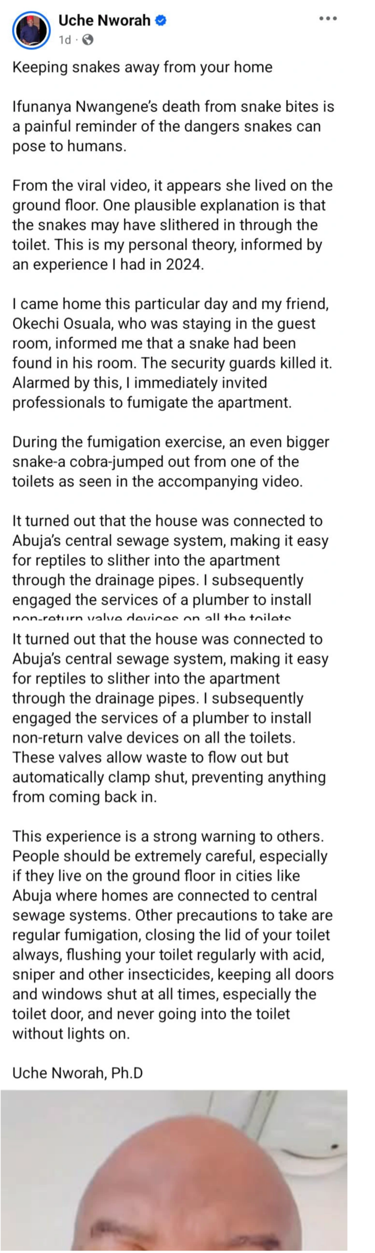 Drawing from his own experience in 2024, Nworah recounted how a snake was discovered in the guest room of his apartment by a friend, prompting immediate concern. While security personnel killed the snake, the incident led him to invite professionals to fumigate the residence.