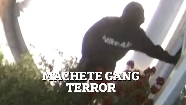 A machete-wielding gang has been captured on CCTV terrorising families in Melbourne’s leafy inner-east during an early-morning crime spree.